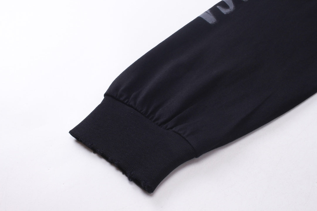BALENCIAGA 模糊字母LOGO印花成衣磨爛長袖T (黑)